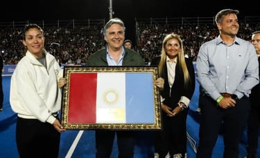 Por último, Llaryora distinguió a la mejor jugadora de hockey argentino de todos los tiempos, Luciana Aymar, por su sacrificio, su entrega y por dejar en los más alto a la bandera argentina.